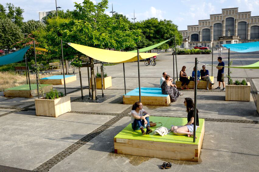 Nous souhaitons créer une “aire de repos” qui invite à ralentir, à prendre le temps de s’installer confortablement et de savourer l’instant, une manière pour les habitants et les passants de s’ancrer autrement dans cette place.