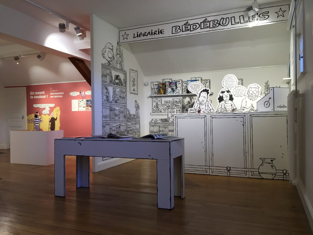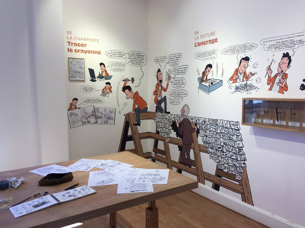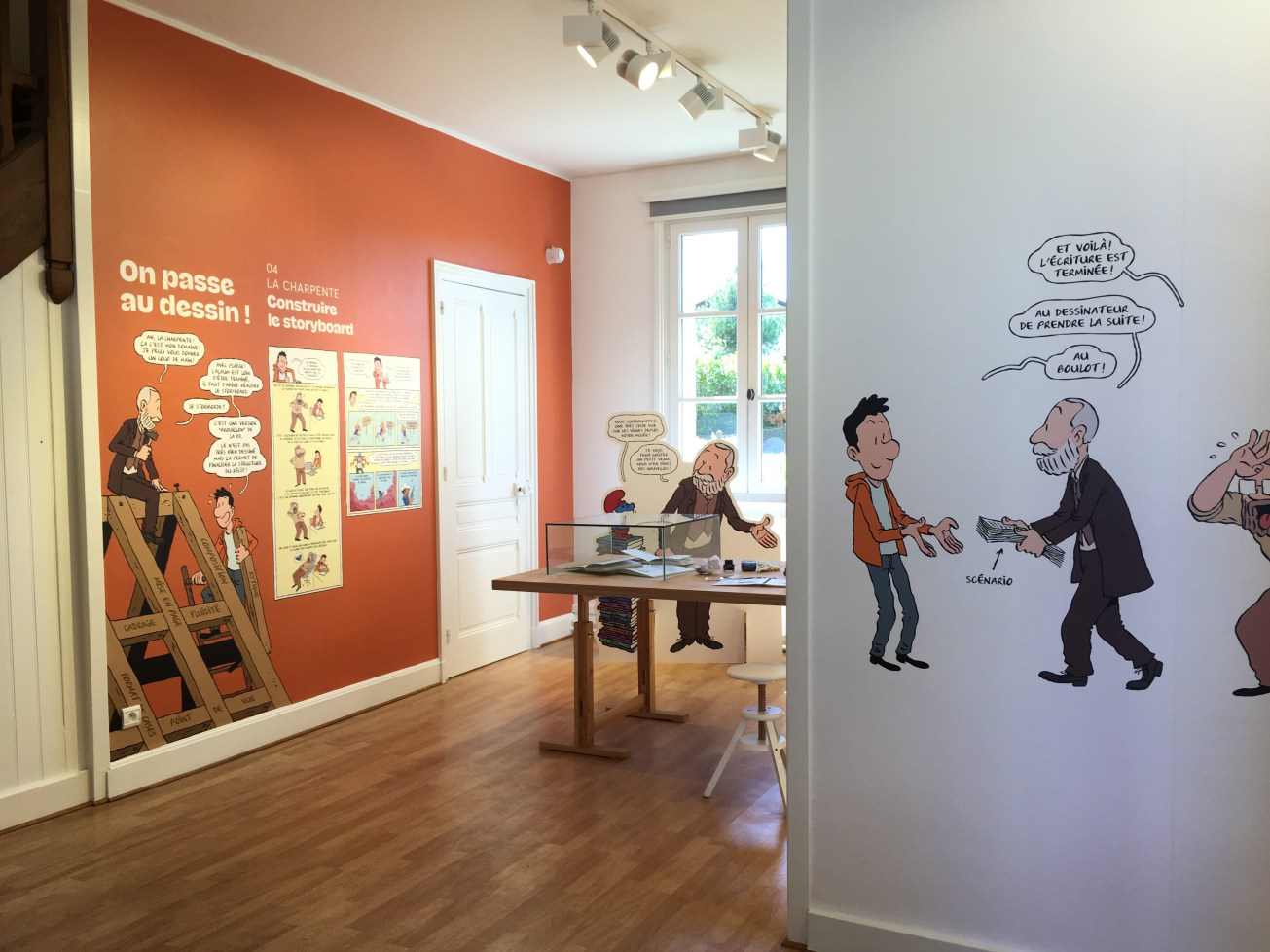 En collaboration avec l’auteur de BD Jérôme Jouvray, et Carole Perret, graphiste, nous avons réalisé une exposition temporaire immersive pour le musée du Compagnonnage de Romanèche Thorins. Sur tous les murs du musée se raconte une histoire grandeur nature. L’occasion pour les visiteurs de déambuler et ainsi découvrir les coulisses de la création d’une bande dessinée.