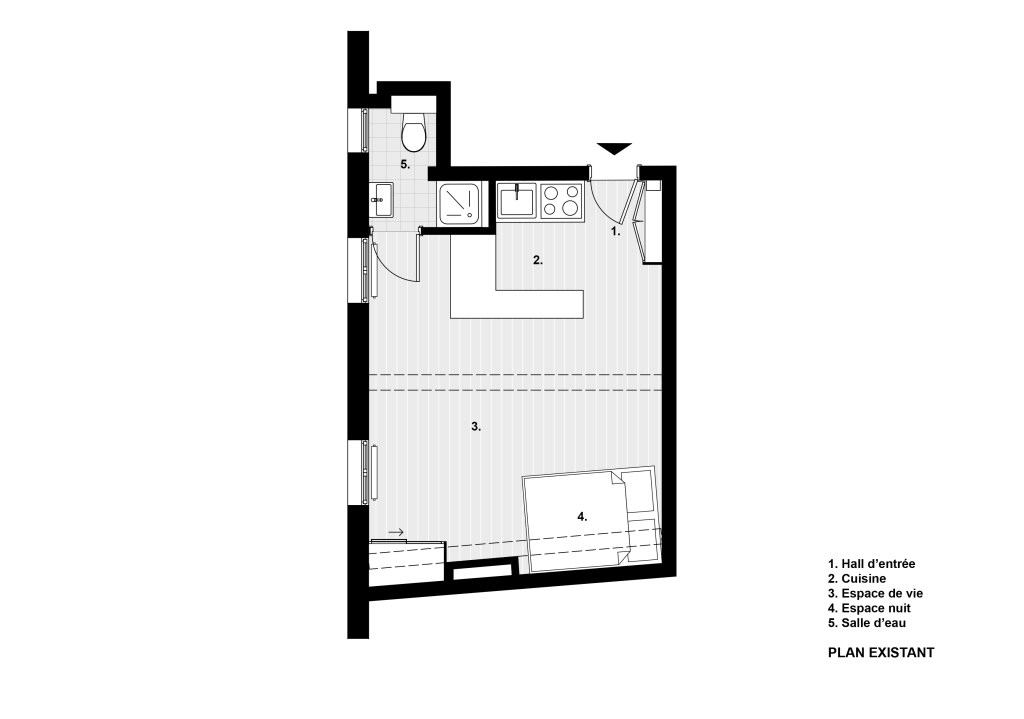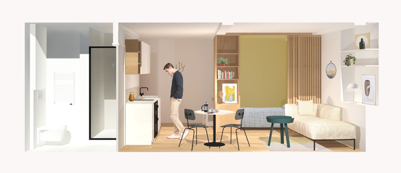 En septembre 2022, A. et C. acquièrent un studio de 25 m² dans une impasse calme du 11ème arrondissement de Paris. L’objectif est clair: rénover entièrement cet appartement, en faire un cocon douillet pour leur fils venu étudier dans la capitale, et leur permettre d’avoir un pied à terre pour leurs week- end parisiens.